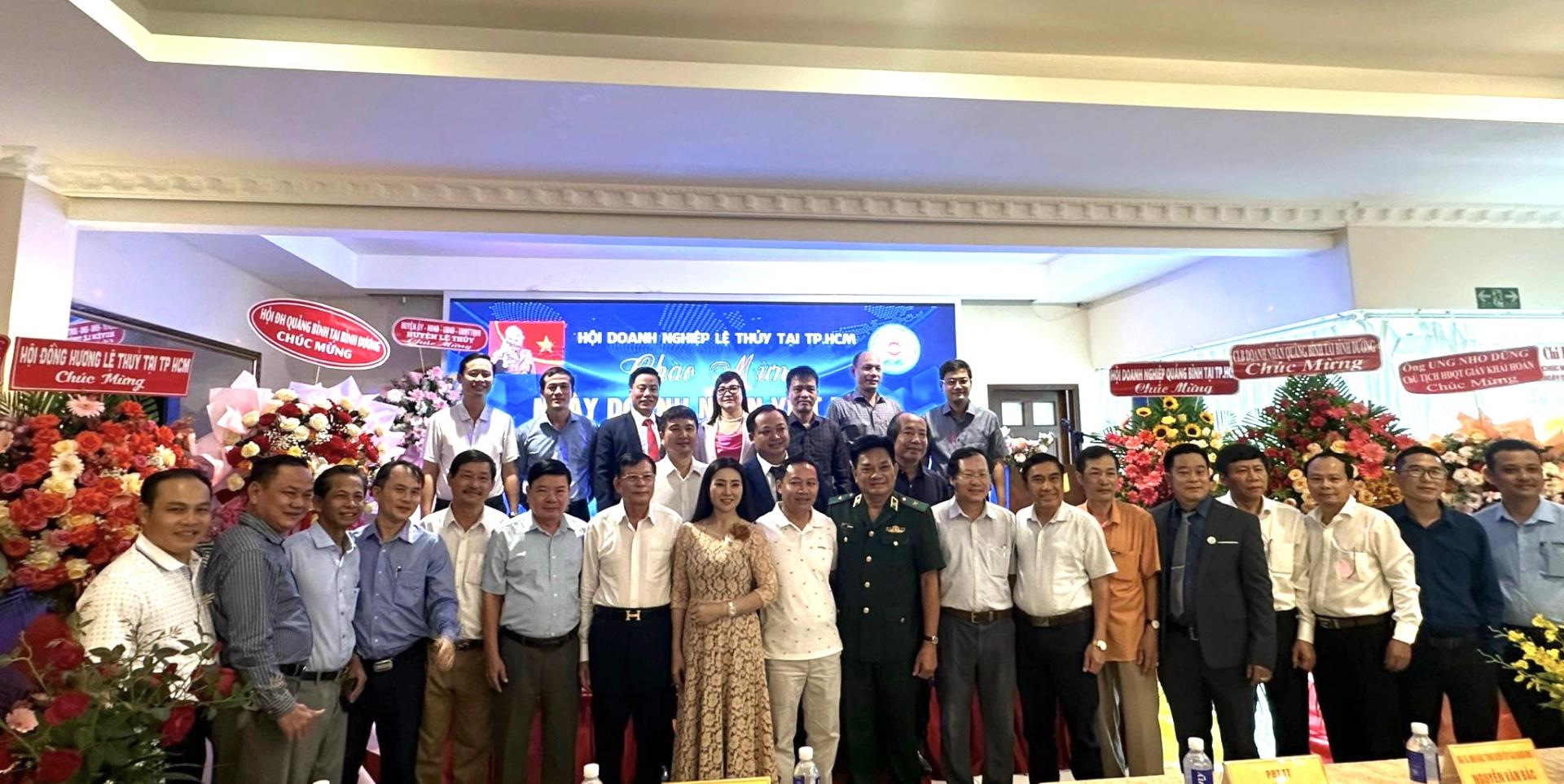 Nhân dịp này, Phó Bí thư Huyện ủy Phan Hồng Đăng và ông Trần Đức Tới, Trưởng Công an huyện Lệ Thủy thay mặt huyện nhà trao bằng khen của Chủ tịch UBND huyện Lệ Thủy tặng 15 doanh nhân tiêu biểu, gồm: Doanh nhân (DN) Trần Thường, Tổng Giám đốc Công ty XD Địa ốc Đại Phúc, Chủ tịch Hội Doanh nghiệp Lệ Thủy tại TPHCM; DN Nguyễn Cảnh, Tổng Giám đốc Công ty Nam Thành, Phó Chủ tịch Hội Doanh nghiệp Lệ Thủy; DN Võ Văn Quyết, Tổng Giám đốc Công ty Nhựa Thuận Thiên, Phó Chủ tịch Hội Doanh nghiệp Lệ Thủy; DN Lê Quang Trung, Tổng Giám đốc Công ty Mắt Thần, Phó Chủ tịch Hội Doanh nghiệp Lệ Thủy; bà Trần Thị Kim Huế, Thư ký, Ủy viên thường trực Hội Doanh nghiệp Lệ Thủy tại TPHCM; bà Lưu Hương Lan… đã có nhiều thành tích trong hoạt động của Hội Doanh nghiệp Lệ Thủy tại TPHCM.