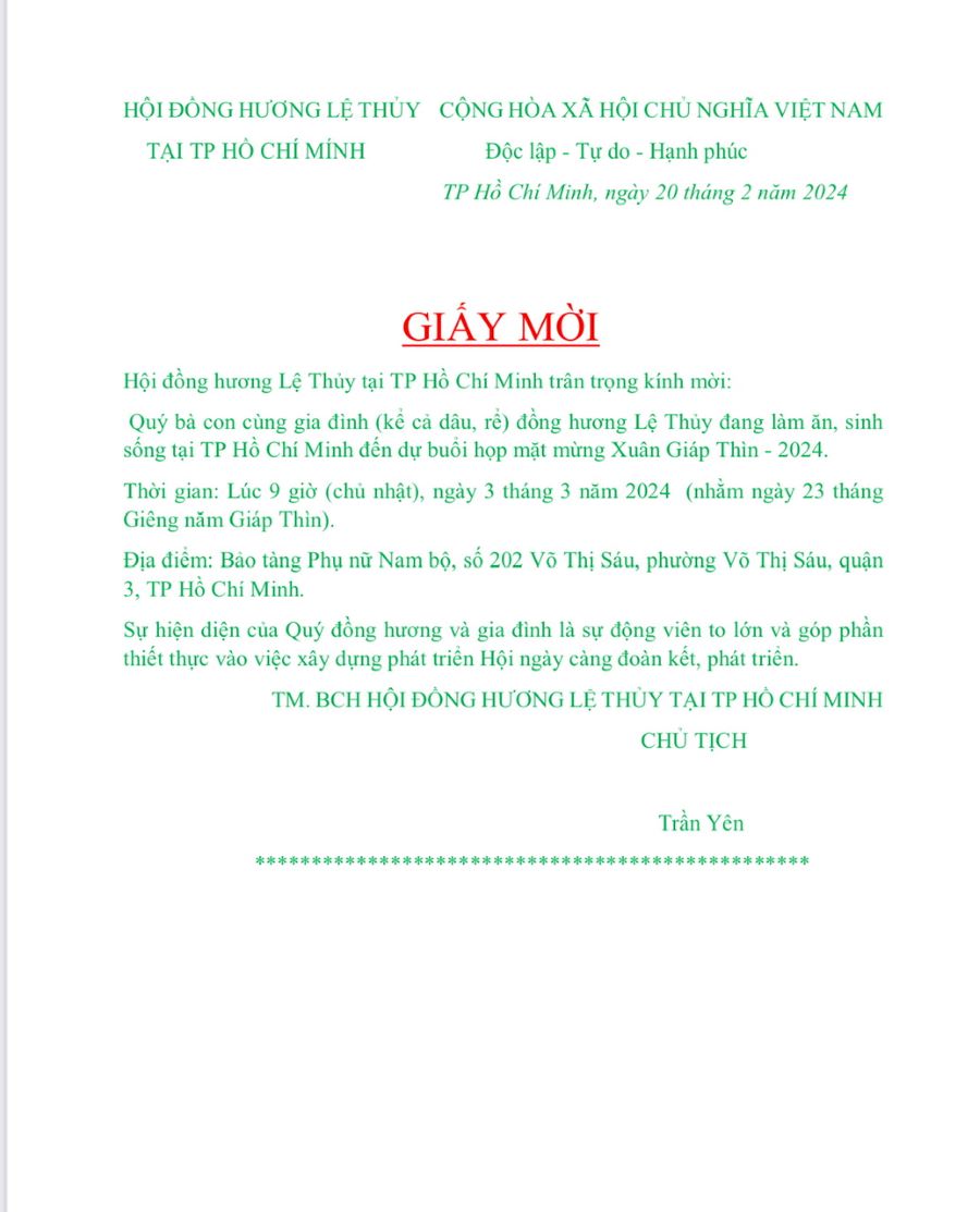 (HDH). Trong không khí rộn ràng của những ngày cuối năm, ngày 19-1, đoàn đại diện Ban chấp hành Hội đồng hương huyện Lệ Thủy tại TP Hồ Chí Minh đã đến thăm tặng quà, chúc Tết Ất Tỵ-2025 gia đình các bậc tiền bối và các cụ cao tuổi.