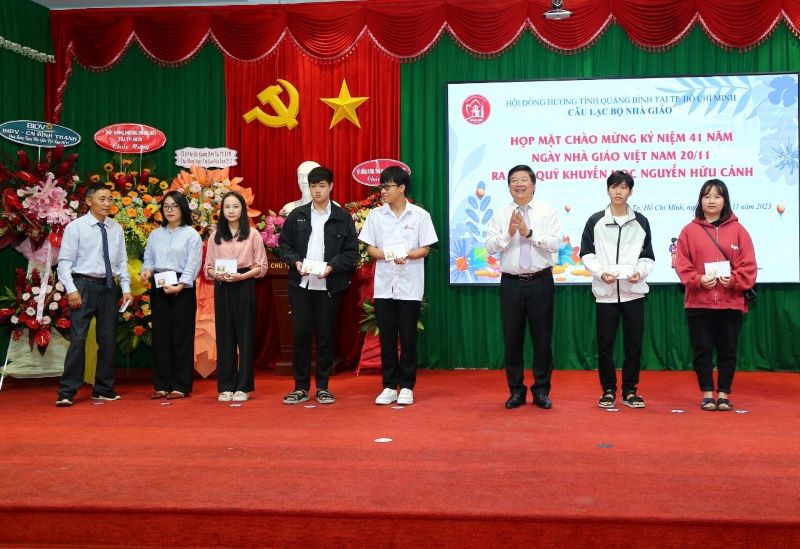 Ngày Nhà giáo Việt Nam (20-11), CLB Nhà giáo đã tổ chức buổi gặp mặt truyền thống vui vẻ, ấm cúng. Điểm nhấn dịp 20-11, trong ngày gặp mặt truyền thống, BCH đã làm lễ ra mắt Quỹ khuyến học Nguyễn Hữu Cảnh và trao học bổng cho 31 em sinh viên năm nhất quê Quảng Bình đang học tập tại TPHCM. Quỹ khuyến học Nguyễn Hữu Cảnh mới ra đời nhưng đã nhận được sự quan tâm, ủng hộ về tinh thần, vật chất của nhiều mạnh thường quân, các nhà hảo tâm.