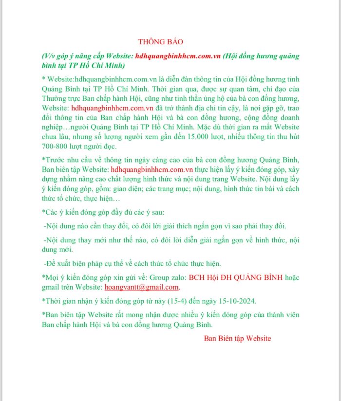(V/v góp ý nâng cấp Website: hdhquangbinhhcm.com.vn (Hội đồng hương quảng bình tại TP Hồ Chí Minh)
