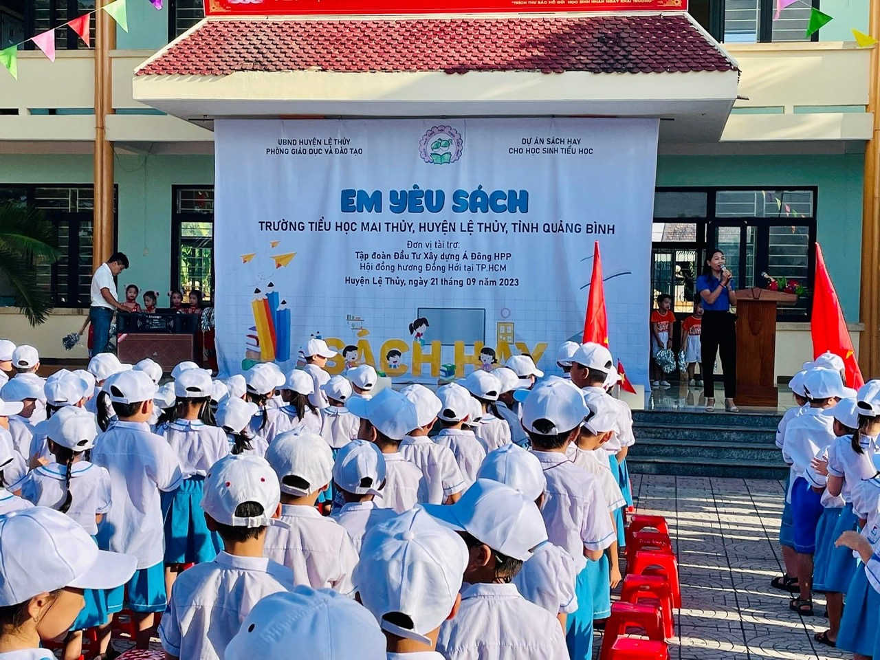 (HDH).- Ngày 21/9/2023, đoàn công tác do ông Hoàng Viết Quê, Phó Chủ tịch Hội đồng hương Tỉnh - Chủ tịch Hội đồng hương TP Đồng Hới tại TPHCM đại diện cho đơn vị tài trợ (Hội đồng hương TP Đồng Hới tại TP HCM và Tập đoàn đầu tư xây dựng Á Đông HPP) cùng với Ban dự án Sách hay trao tặng sách cho học sinh bậc tiểu học của 29 trường thuộc huyện Lệ Thủy và 18 trường thuộc huyện Quảng Ninh (Quảng Bình).